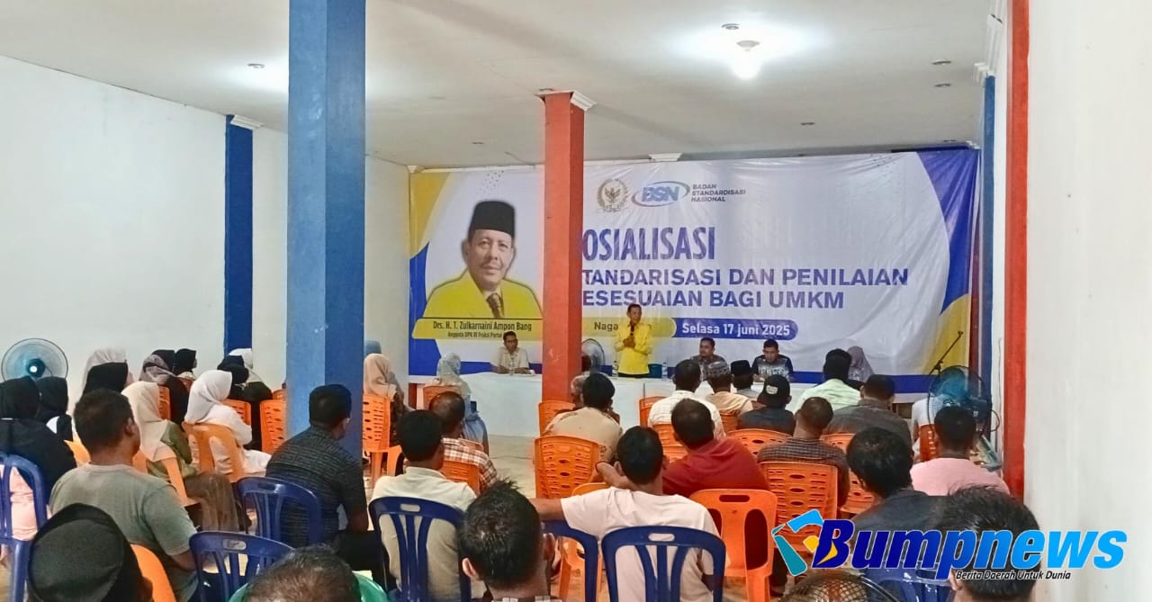 NAGAN RAYA – Anggota DPR RI Komisi VII Daerah Pemilihan 1 Aceh, H. T. Zulkarnaini, yang akrab disapa Ampon Bang, hari ini menggelar sosialisasi penting mengenai standarisasi dan penilaian kesesuaian bagi Usaha Mikro, Kecil, dan Menengah (UMKM) di Nagan Raya, 17 Juni 2025.