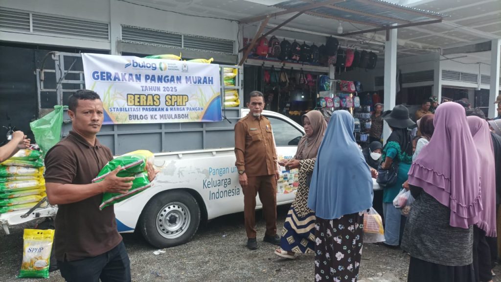 ACEH BARAT — Pemerintah Kabupaten Aceh Barat melalui Dinas Pangan bekerja sama dengan Perum Bulog Cabang Meulaboh menggelar Gerakan Pangan Murah (GPM) di Pasar Bina Usaha, Senin (14/7/2025).