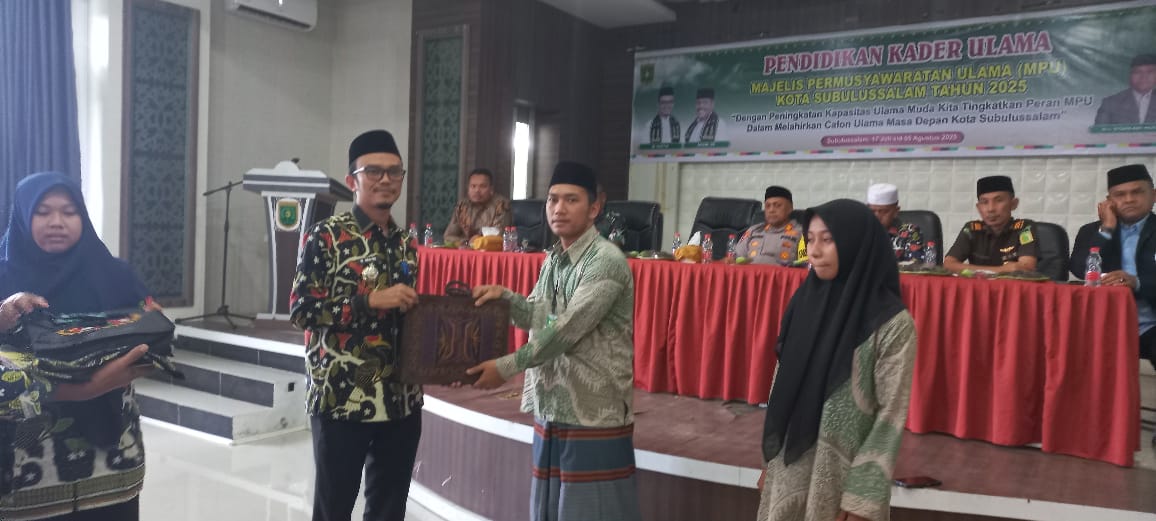 http://Bumpnews.id,Subulussalam-Majelis Permusyawaratan Ulama (MPU) Kota Subulussalam menggelar Pendidikan Kader Ulama (PKU) 2025 di aula LPSE Setdako Setempat, Kamis (17/07/2025)