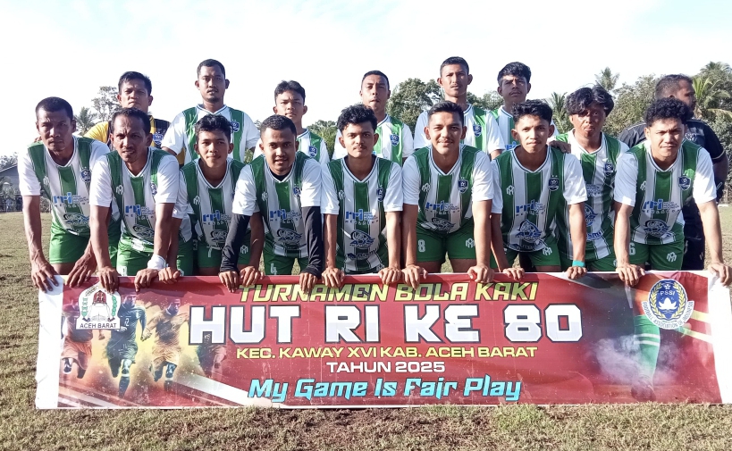 Aceh Barat - Pasi Jambu FC memastikan langkah ke babak semifinal Turnamen Sepak Bola HUT RI ke-80 Kecamatan Kaway XVI setelah menundukkan Meunasa Ara dengan skor 2-0 tanpa balas. Pertandingan yang digelar di lapangan bola kaki Gampong Pasi Jambu tersebut berlangsung sengit, dengan aksi-aksi menawan dari kedua tim. Selasa (12/08/2025).