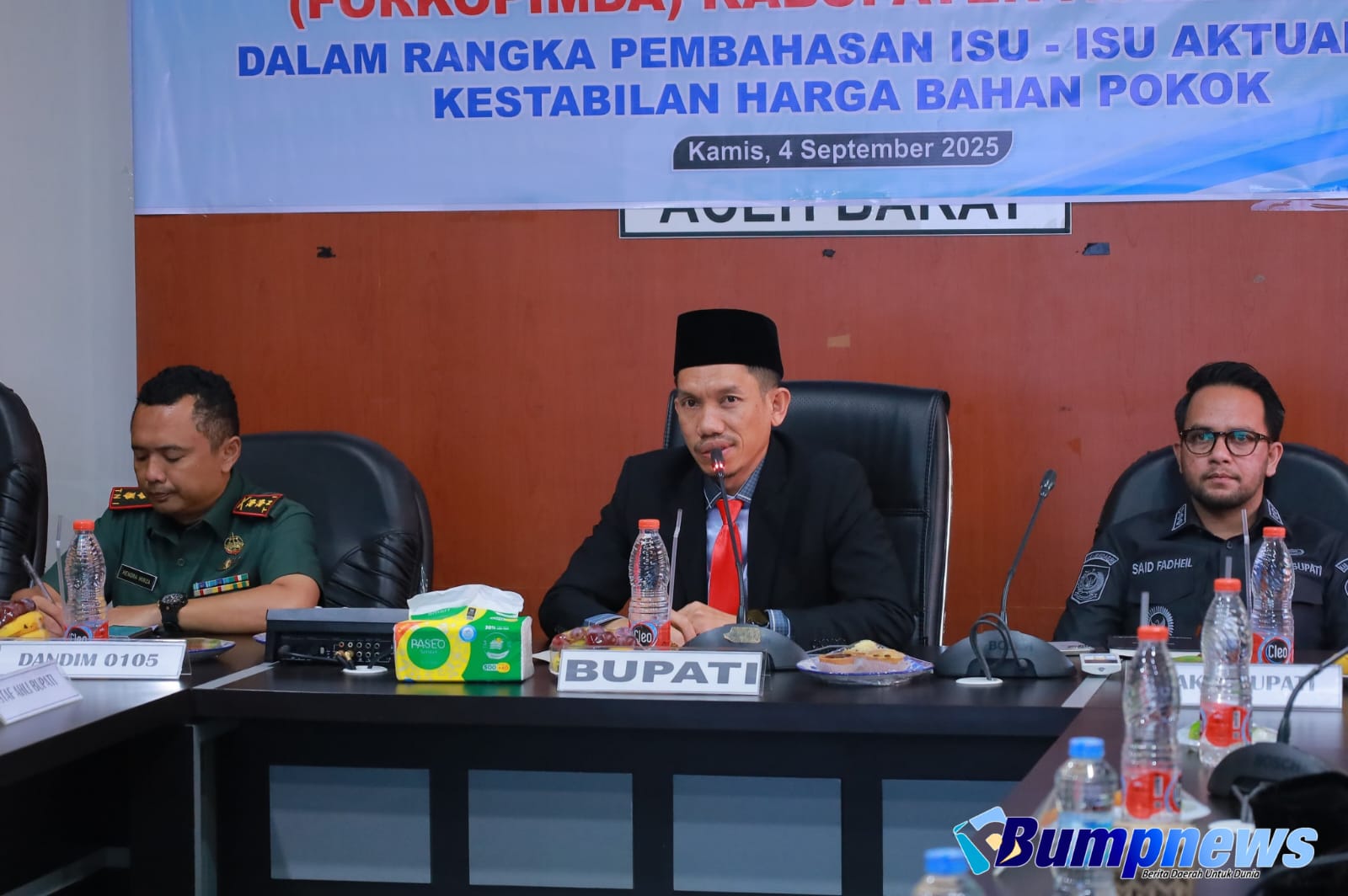 ACEH BARAT | BumpNews.ID – Forum Komunikasi Pimpinan Daerah (Forkopimda) Aceh Barat menggelar rapat untuk membahas isu – isu aktual dan kestabilan harga bahan pokok di ruang rapat Cut Nyak Dhien Setdakab pada Kamis (4/9/2025).