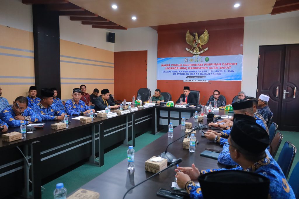 ACEH BARAT | BumpNews.ID – Forum Komunikasi Pimpinan Daerah (Forkopimda) Aceh Barat menggelar rapat untuk membahas isu – isu aktual dan kestabilan harga bahan pokok di ruang rapat Cut Nyak Dhien Setdakab pada Kamis (4/9/2025).