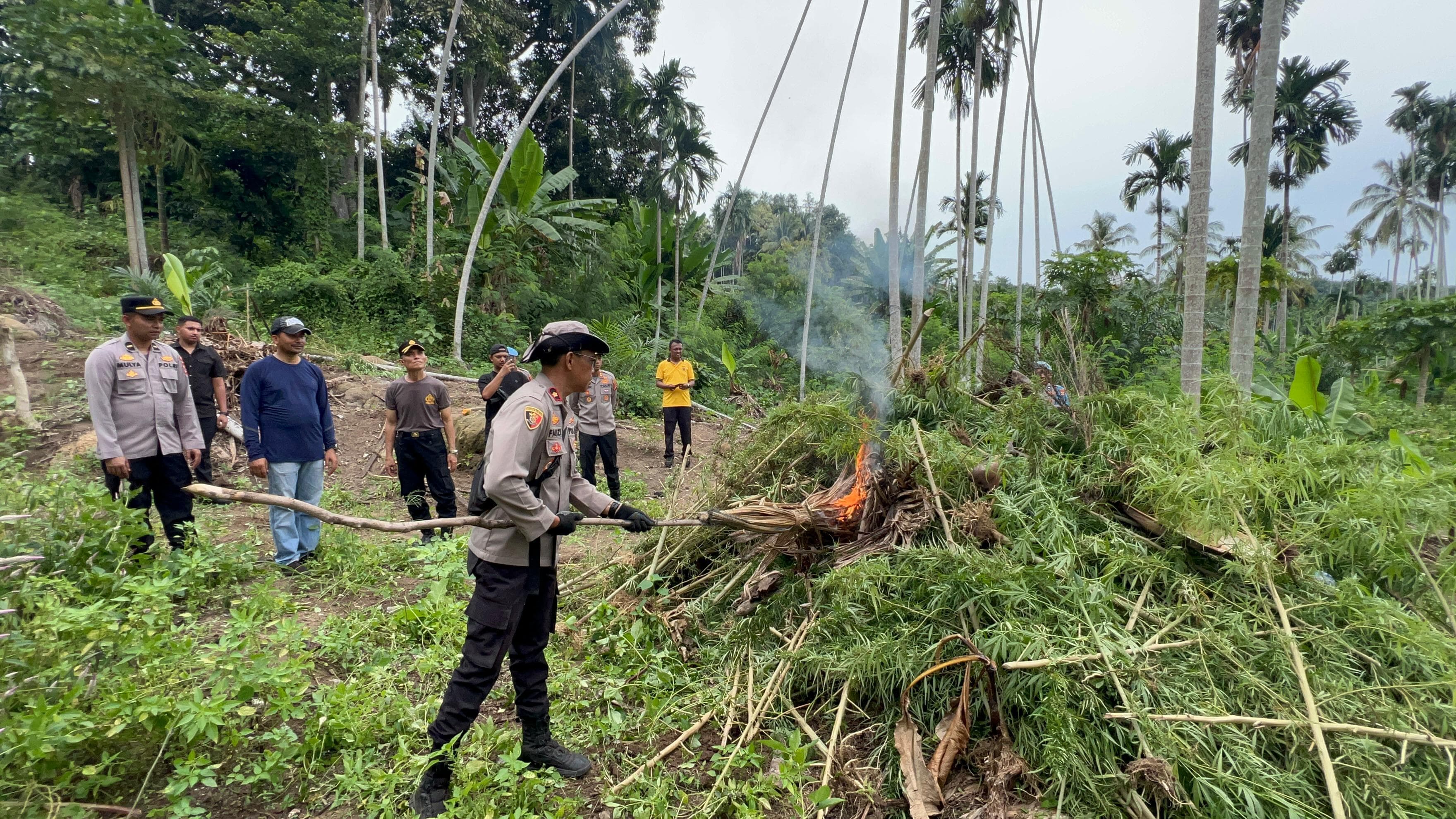 “Sebanyak 4.195 batang ganja dimusnahkan di lokasi, sementara lima batang kami bawa ke Polres sebagai barang bukti untuk uji laboratorium,” jelas Kapolres.