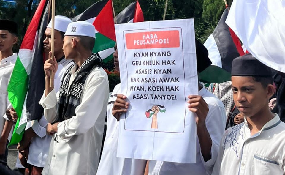 “Musuh kita adalah Zionis Israel, bukan sesama umat,” tegas perwakilan masa aksi di Banda Aceh dalam orasinya.