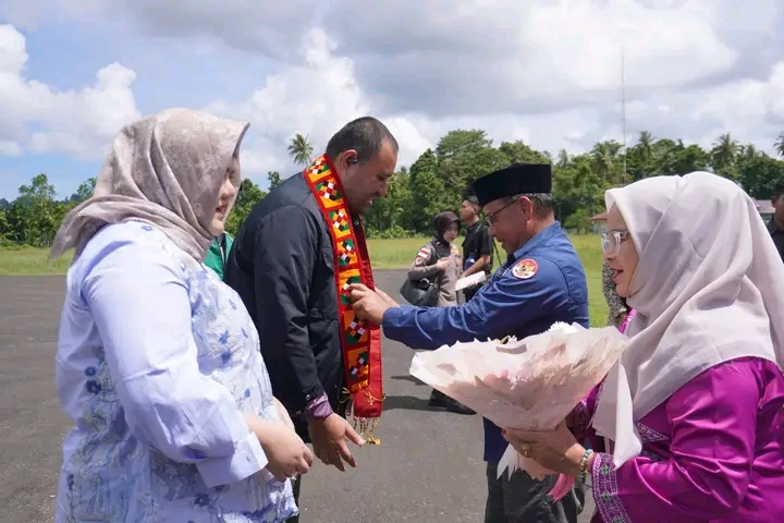 Penyambutan tersebut dipimpin langsung oleh Wakil Bupati Simeulue Nusar Amin, didampingi Ny. Lasminidar Nusar Amin, serta dihadiri unsur Forum Koordinasi Pimpinan Daerah (Forkopimda) setempat.