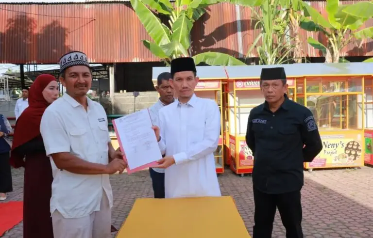 Aceh Barat | BumpNews.ID – Pemerintah Kabupaten Aceh Barat menyerahkan bantuan fasilitas lapak usaha berupa steling kepada para pelaku Ekonomi Kreatif (Ekraf) Tahun Anggaran 2025.