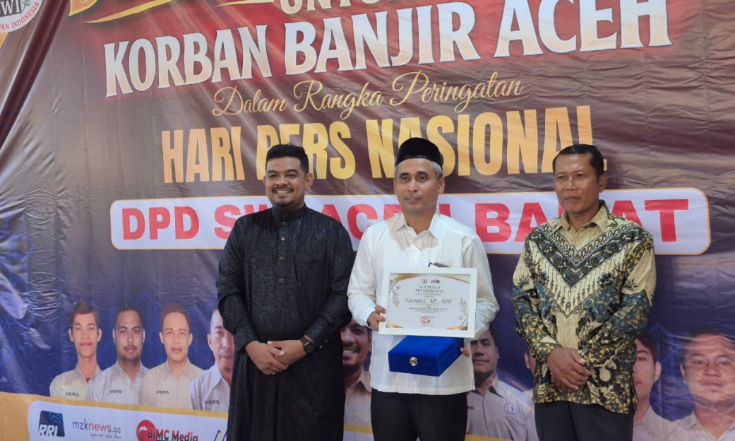 Selain doa dan tausiah, SWI Aceh Barat juga menyerahkan penghargaan kepada sejumlah pejabat dan tokoh daerah sebagai bentuk apresiasi atas dukungan dan kontribusi mereka terhadap kemajuan pers serta pembangunan daerah.
