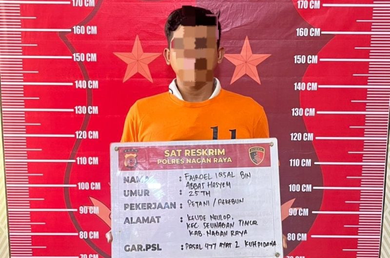 Penahanan dilakukan berdasarkan Laporan Polisi Nomor: LP/B/18/II/2026/SPKT/POLRES NAGAN RAYA/POLDA ACEH tertanggal 7 Februari 2026, disertai surat perintah penyidikan, penangkapan, dan penahanan yang diterbitkan penyidik.